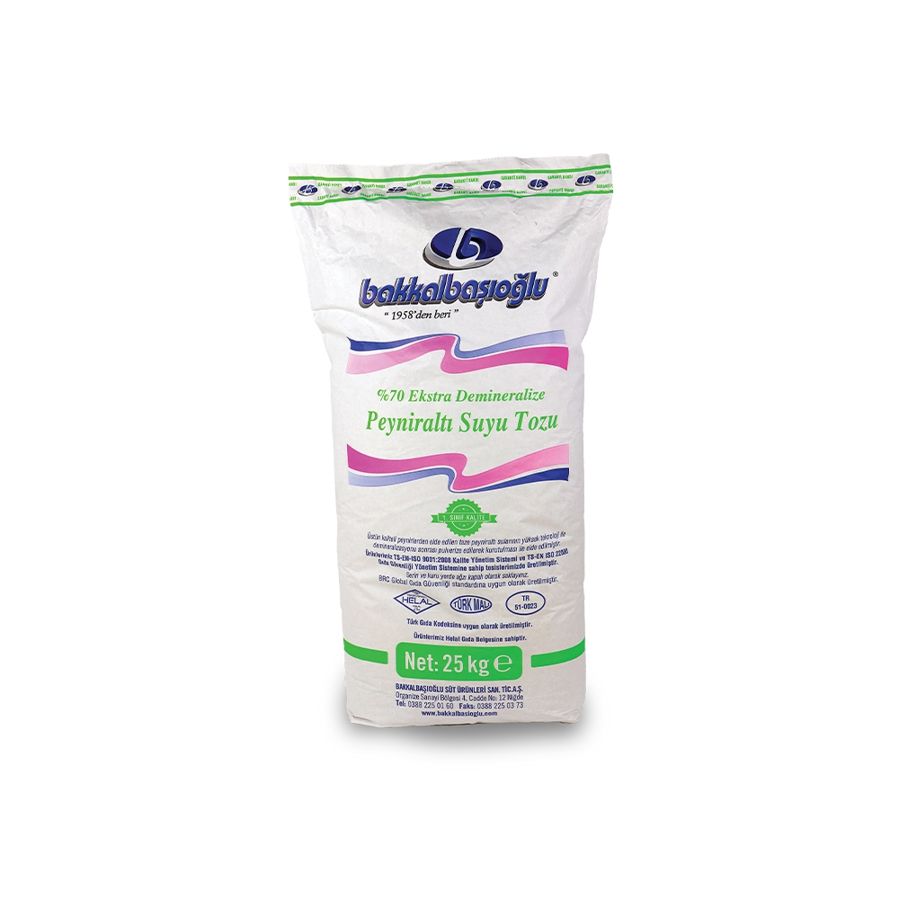 BAKKALBAŞIOĞLU %70 DEMİNERALİZE PEYNİRALTI SUYU TOZU 25 KG